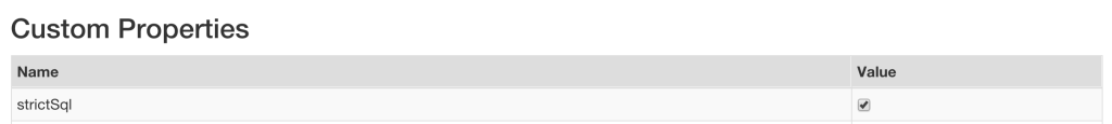 ALTER DATABASE custom strictSql=false