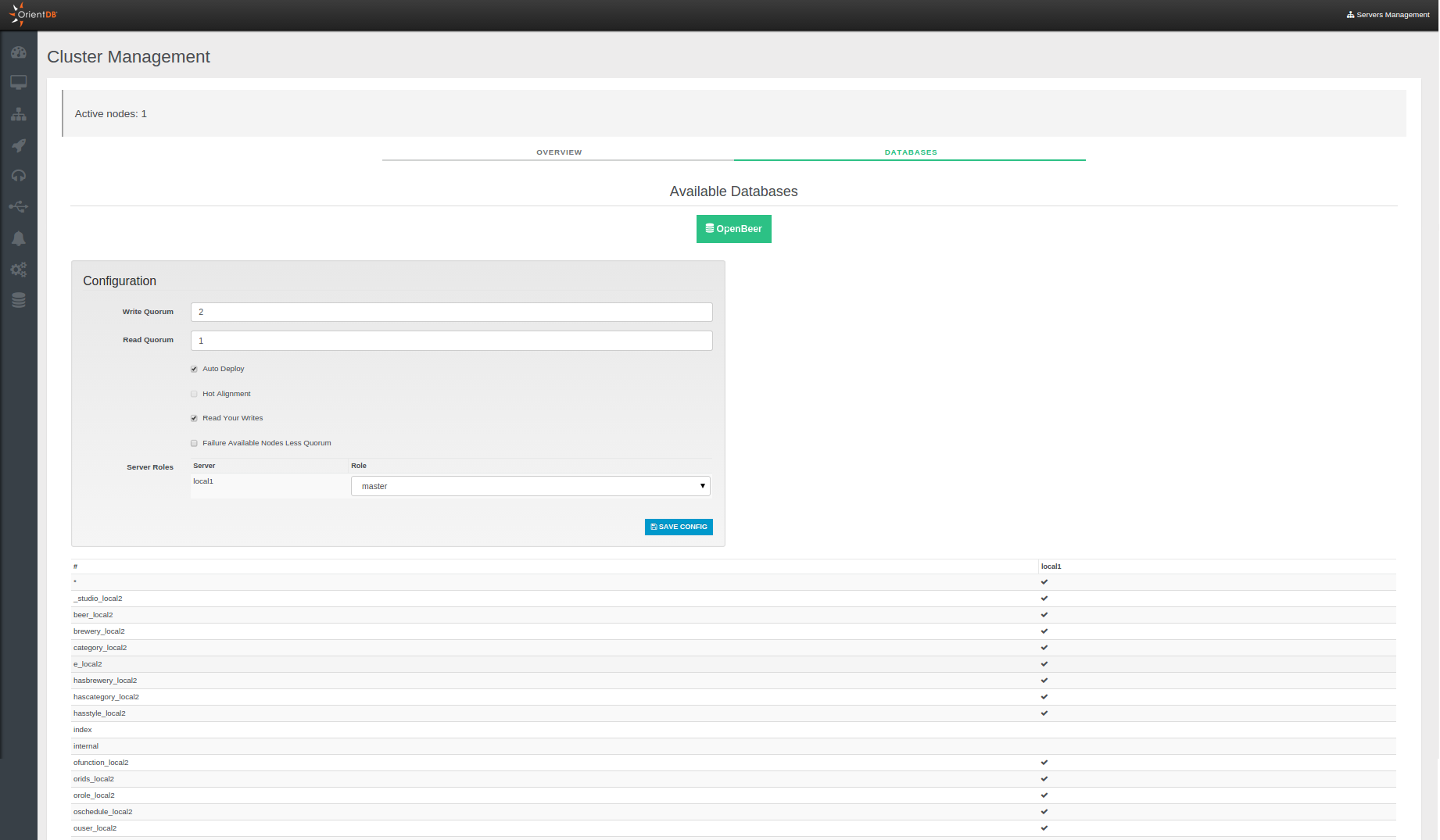 In this panel you can see all databases present on each server joining your cluster.