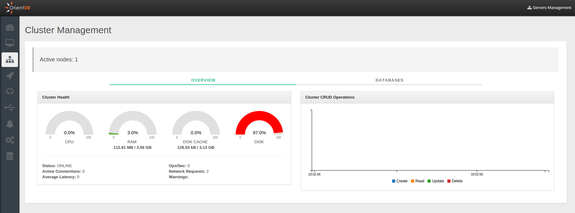 CPU,RAM,DISK CACHEandDISKusedStatusOperations per secondActive ConnectionsNetwork RequestsAverage LatencyWarningsLive chartwith CRUD operations in real-time
