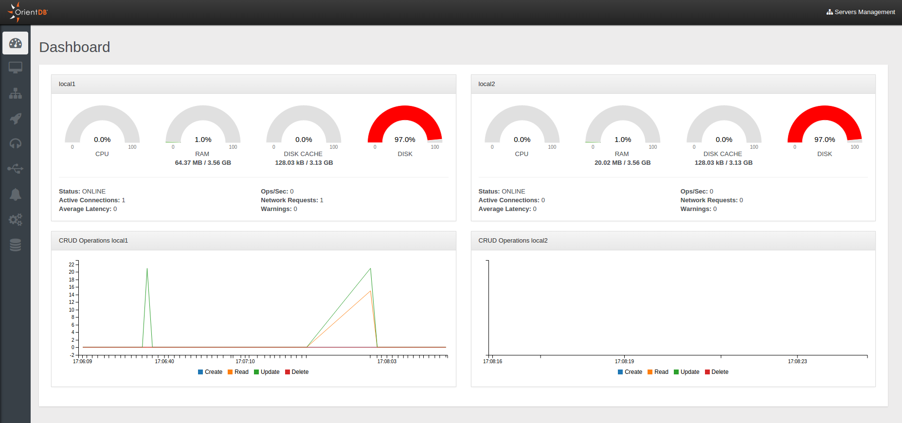Here you can see the Dashboard reporting the status of a cluster composed of two nodes.