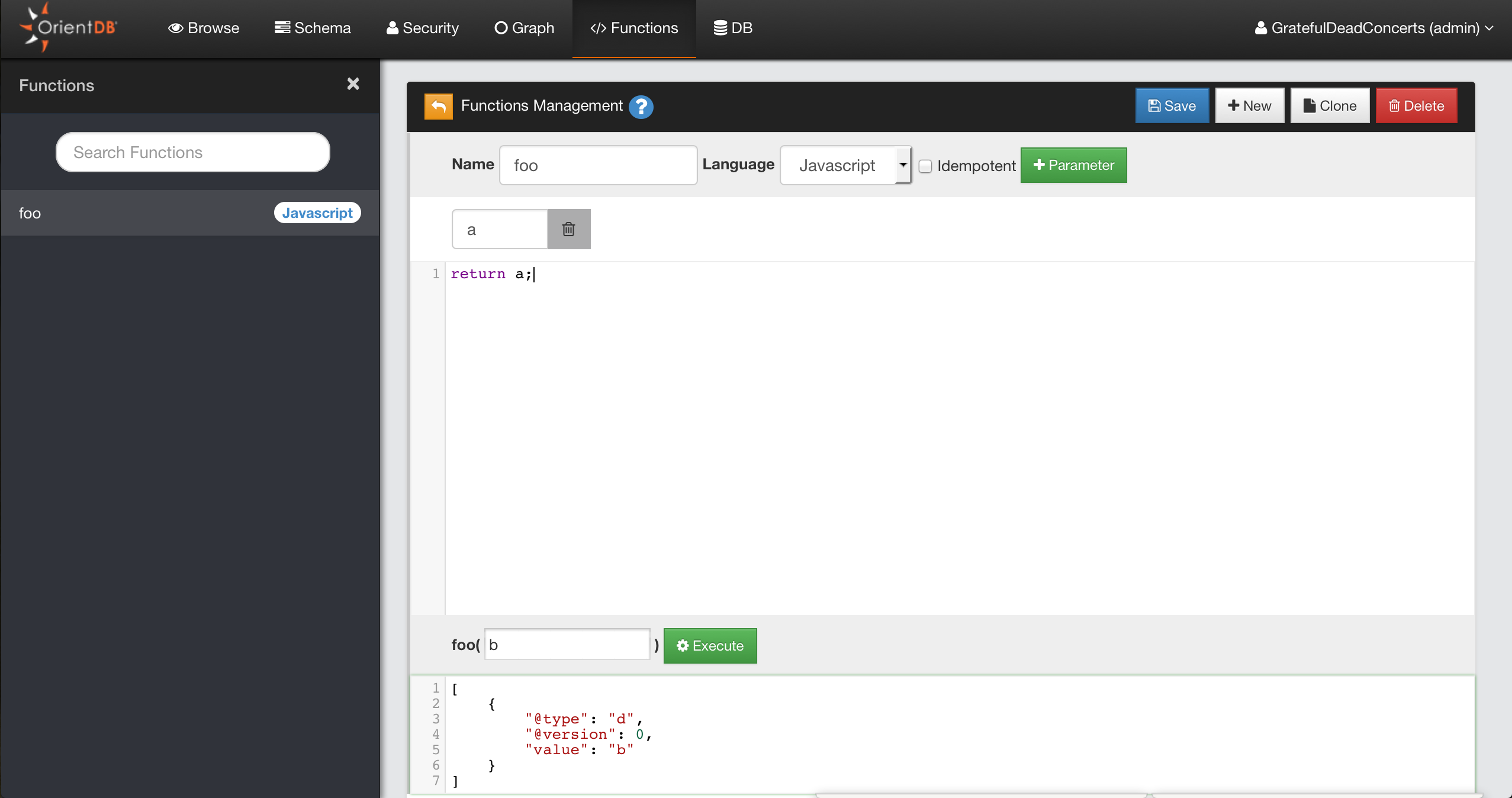 OrientDB allows to extend the SQL language by providing Functions. Functions can be used also to create data-driven micro services. For more information look at Functions.