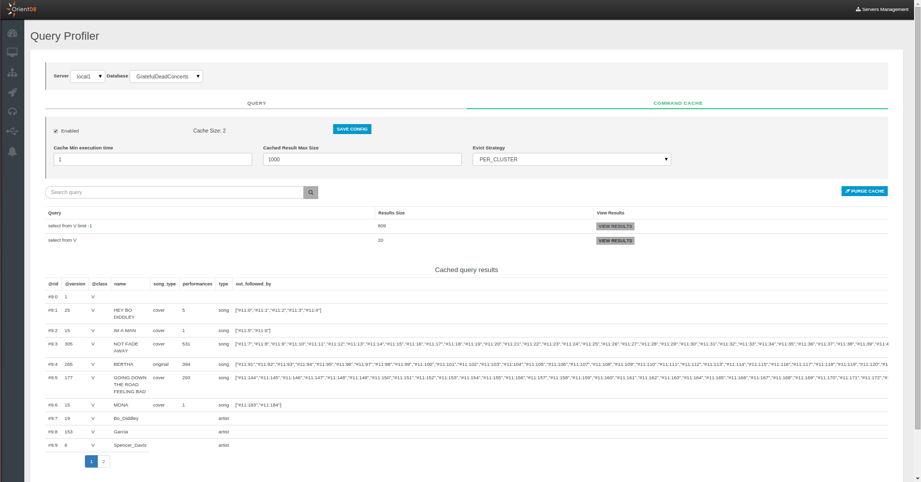 Through this panel you can manage the cache of the specific server and consult the cached results of queries by using the VIEW RESULTS button.