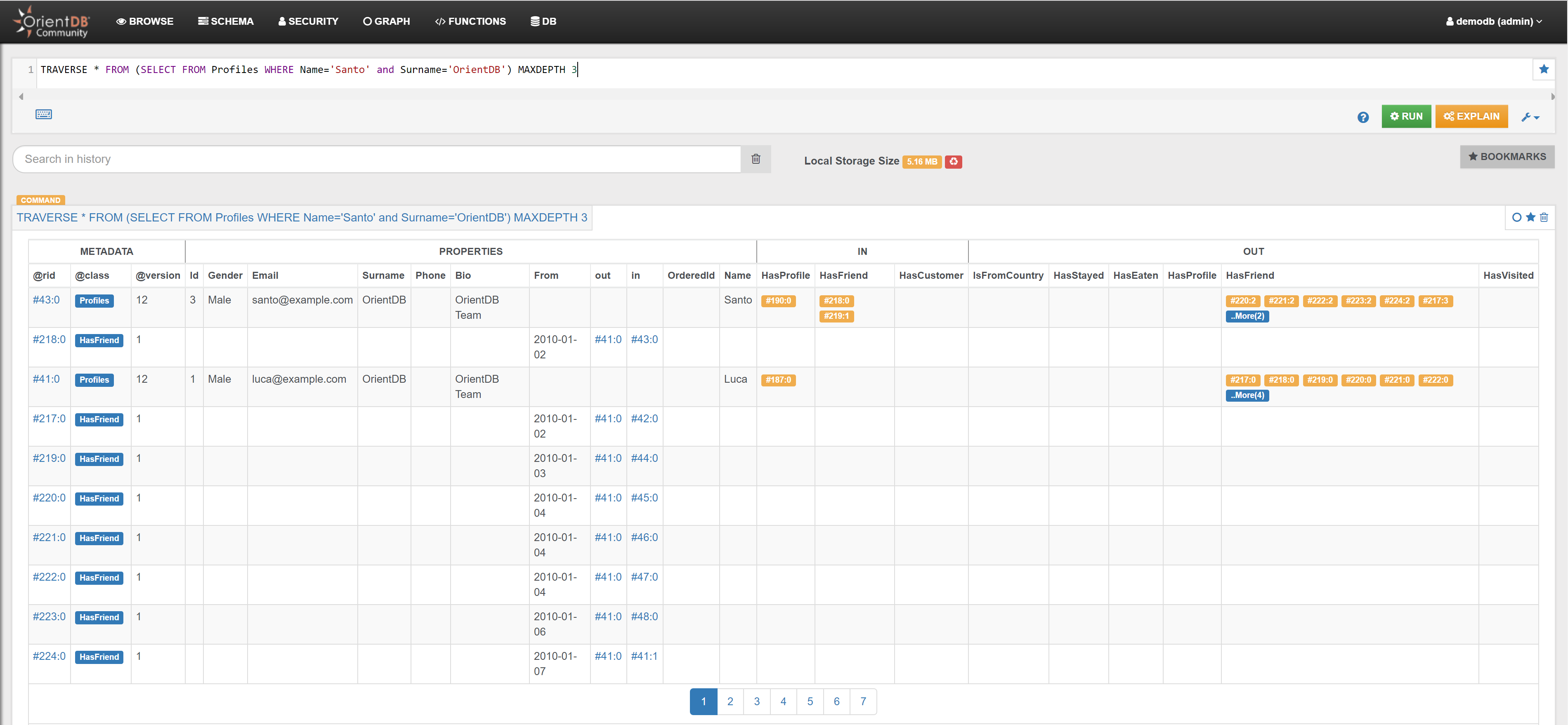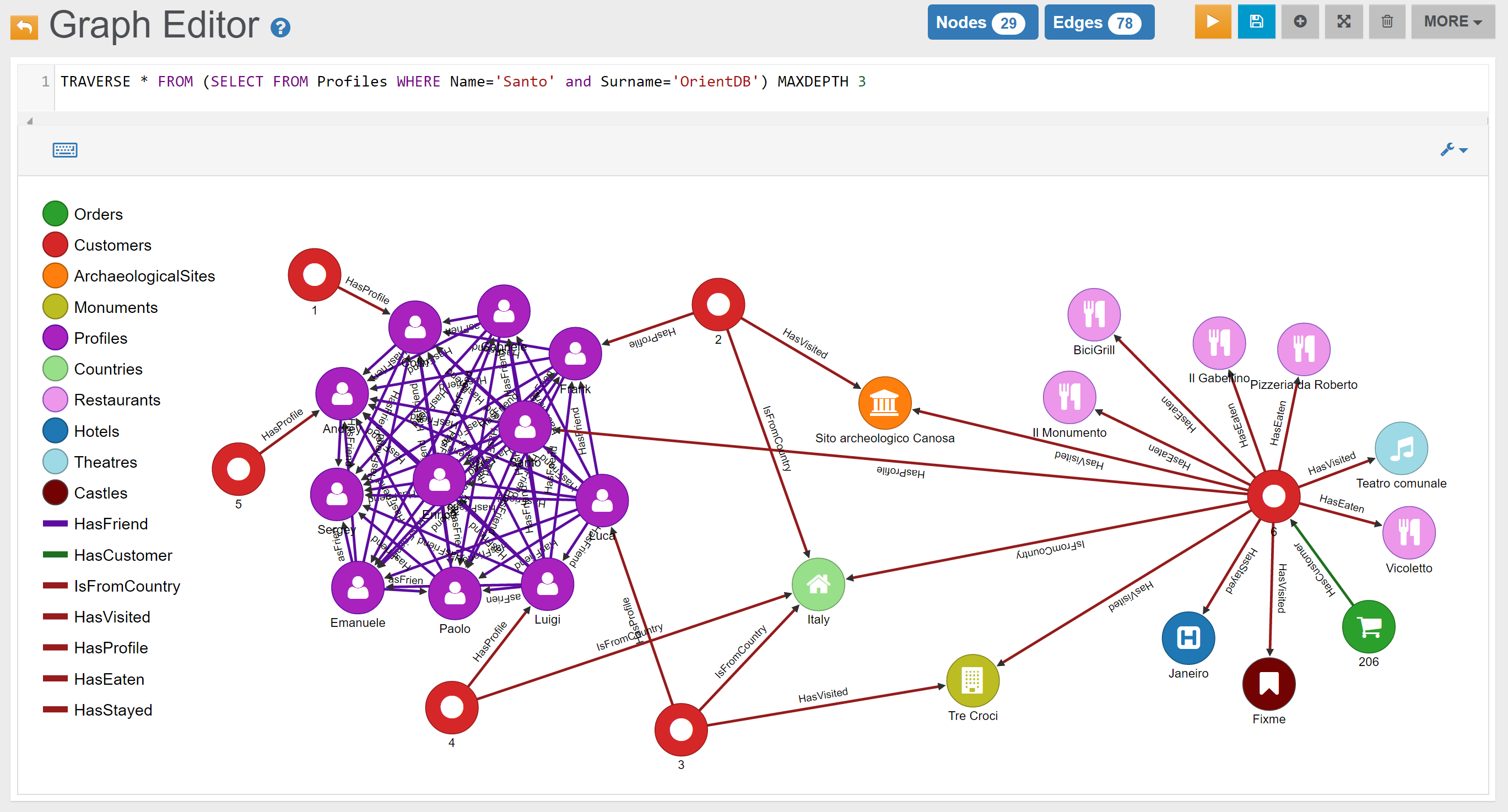 - Traverses parts of or entire trees and graphs of records in milliseconds.